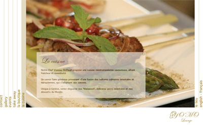 / Client : Yomolounge (Restaurant) / Mandat : Site internet - Prise des visuels pour illustrer le site - Animation Flash d'entrée de site